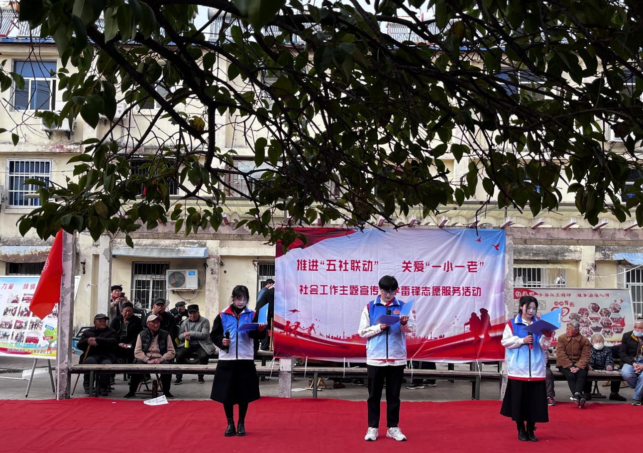 为深入贯彻落实党的二十大精神,永利集团304am登录2022级汉语言文学专升本5班于2023年3月22日前往淮北市朔里矿矿业社区小广场参加社区社工关爱“一小一老”社会工作主题宣传暨学雷锋志愿服务活动。
