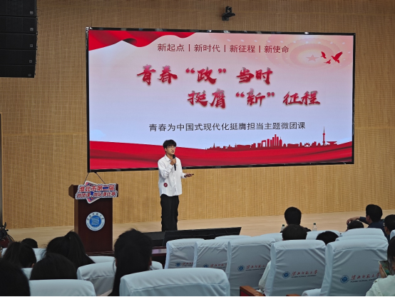 比赛中,杨裕杰以《青春“政”当时,挺膺新征程》为题,从“立鸿鹄之壮志,做青春奋斗者”等三个维度展开论述。他以刘开渠同志的雕塑成就和自己的乡村支教经历等鲜活案例为切入点,在9分钟的展示中构建起“理论阐释—实践映照—青春誓言”的完整逻辑链。其授课风格兼具理论厚度与青年温度,成功吸引了台下评委和观众的目光,现场掌声热烈。