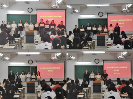 永利集团304am登录师范生教学技能大赛于2023年9月16日正式启动,共分为语文组、数学组、学前组和教具组进行比赛。经过激烈角逐,本次大赛共评选出一等奖20名,二等奖21名,三等奖22名,优秀奖28名,并选出语文组15名同学、数学组10名同学、学前组10名同学和教具组4个小组的同学进入校赛。