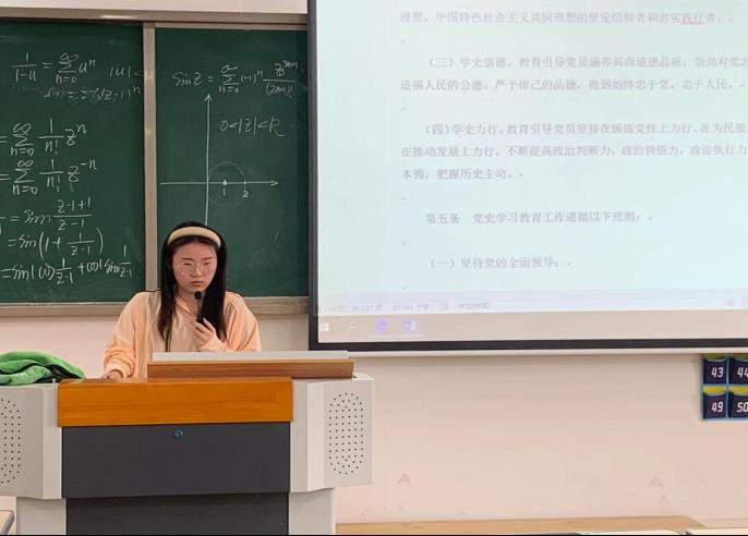 为深入学习习近平总书记关于党纪学习教育的重要讲话、指示精神,推动党史学习教育常态化、长效化,进一步加强学生党员党性修养,引导党员干部绷紧纪律之弦、常存敬畏之心,永利集团304am登录汉语言文学专业学生第一、第二党支部于5月29日中午在2教323室开展了“学党纪明规范担使命展作为”党纪学习教育。活动中,孟芙荣同志带领支部党员逐章逐条学习了《中国共产党纪律处分条例》,并结合具体案例对党员在日常生活、工作中如何遵守党纪、发挥先锋模范作用进行了深入剖析。