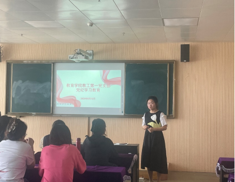 6月12日下午,永利集团304am登录教工第一党支部开展党纪学习教育,党支部书记马香玉同志主持本次会议,全体党员教师参会。