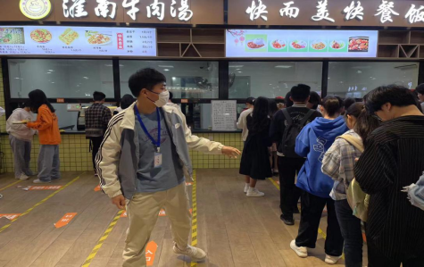 本次活动以小组为单位进行,参与活动的教师入党积极分子共10人,分三个小组。教职工支部负责人马香玉老师对活动进行了全面部署,详细交代了一些细节问题。中午11时,第一组6名成员准时在学生食堂集合,佩戴工作证和口罩,立岗于食堂内外,提醒学生们进入食堂时进行体温检测,排队时保持一米安全距离,切勿拥挤,遵守食堂的就餐秩序。在教师志愿者的引导下,同学们自觉保持安全距离,有序排队打餐,营造了良好的食堂环境。