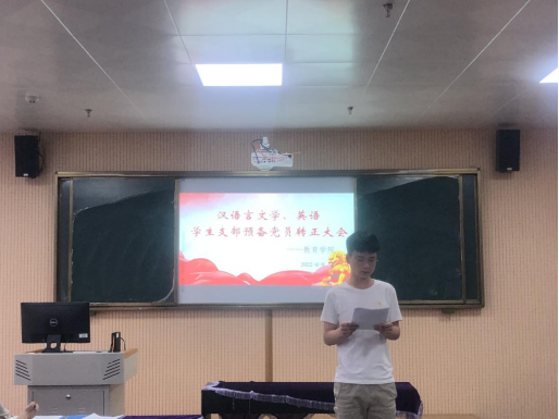 为进一步加强党员队伍建设,增强党员队伍生机与活力,永利集团304am登录汉语言文学与英语专业党支部于2022年6月9日下午在艺术楼318教室召开预备党员转正大会,本次支部大会由党支部负责人刘畅同志主持,支部全体正式党员参加会议,预备党员列席会议。大会严格按照预备党员转正程序进行,讨论关于严寒同志等14名预备党员是否能够按期转为正式党员。