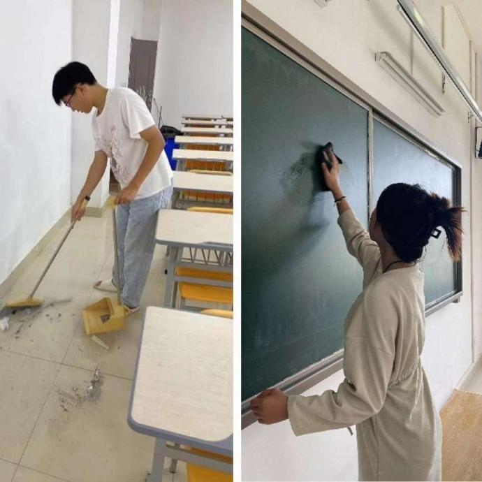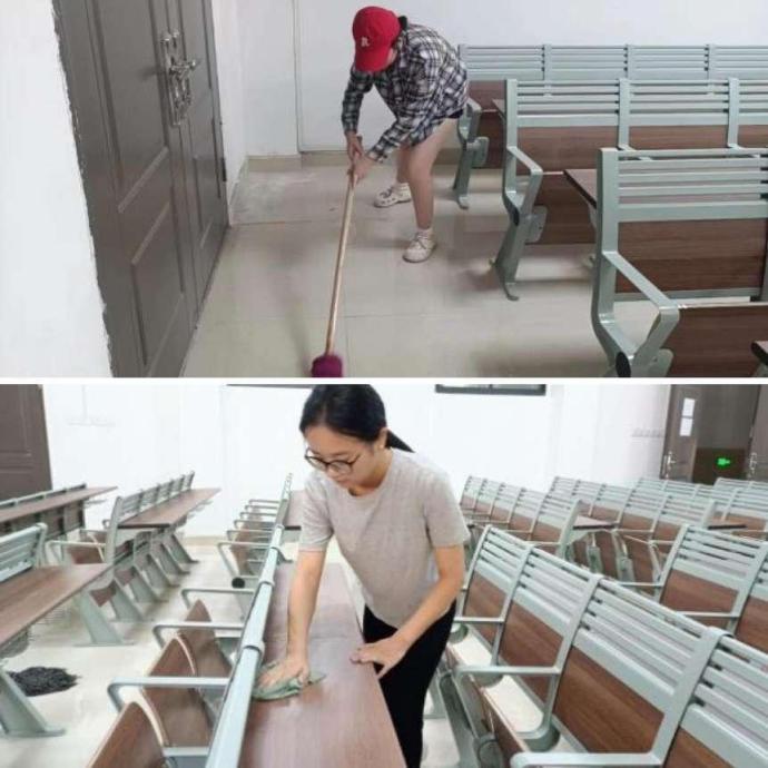 9月1日、2日,学院各学生党支部组织学生党员到教学楼对新生固定教室进行大扫除,为新生入学创造良好的环境。活动中各支部将学生党员分成若干小组,大家分工明确,不怕苦、不怕脏,清理教室的卫生死角、擦洗桌椅板凳,让教室变得干净明亮。