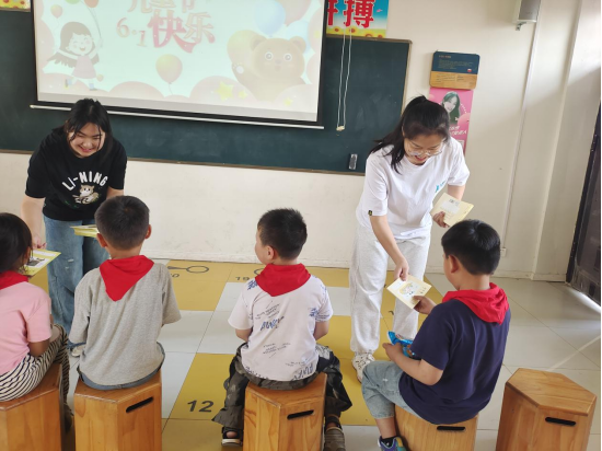 5月28日,志愿者们精心为孩子们准备了少儿节目表演,为丰富孩子们的学习生活,还进行了数字套圈等小游戏,现场欢声笑语、其乐融融。小朋友们在志愿者们的组织下相继登台,竞相展示各自的才艺,演唱了多首脍炙人口的歌曲,组织了趣味盎然的套圈游戏。节目结束后,志愿者们向小朋友们发放了崭新的作业本和营养丰富的牛奶,以此表达对孩子们学习成长的美好祝愿。
