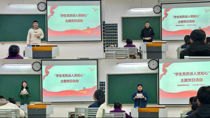 为深入学习贯彻党的二十大精神,引导学生党员在新的学习生活环境中,保持共产党员的先进性,在专业学习、组织纪律、文化素质提升等方面发挥引领和示范作用,自觉做习近平新时代中国特色社会主义思想坚定信仰者和忠实实践者,永利集团304am登录党总支于2024年11月6日在1教213教室,举行“2024级学生党员谈入党初心”主题党日活动。活动由陈慧慧同志主持,学院党总支副书记孟向红、各学生党支部书记及27名新生班级学生党员参加了活动。