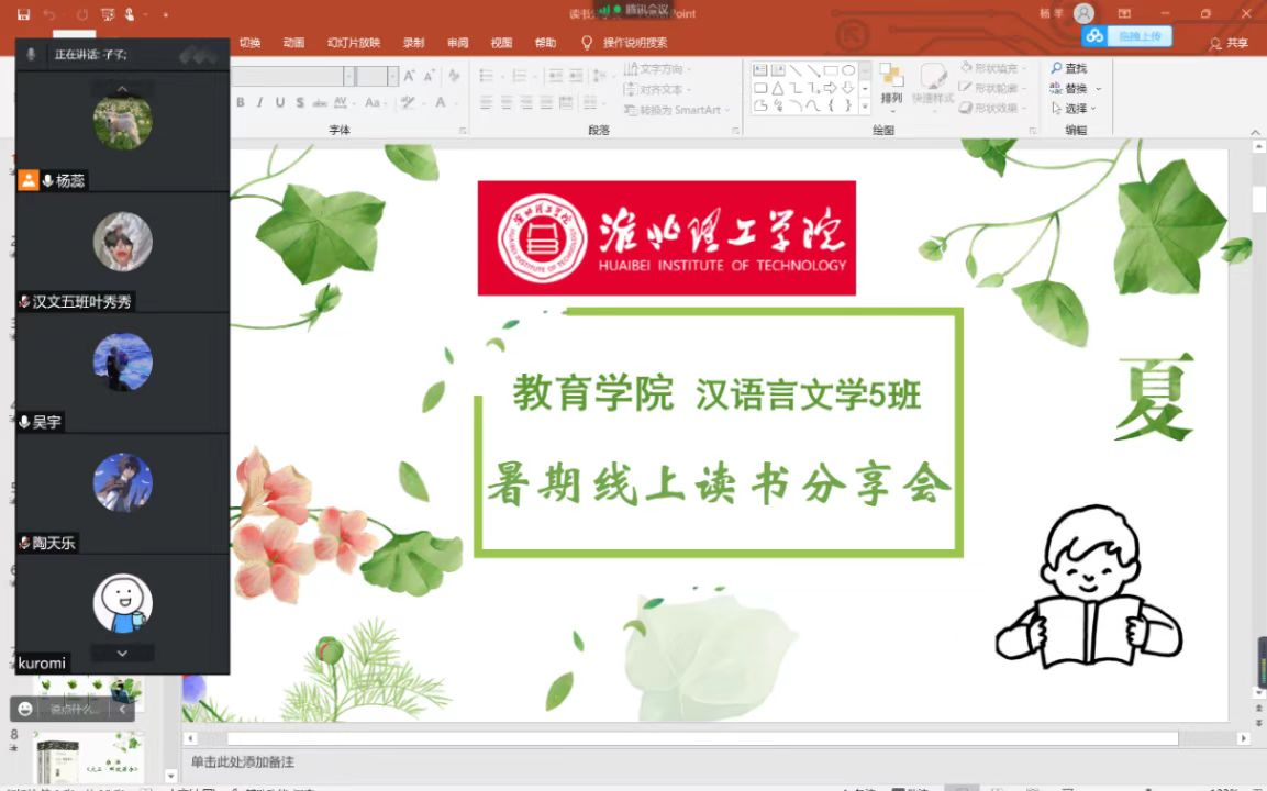 构建书香班级。学院积极响应学校号召,鼓励同学们利用暑假认真读书,并组建“暑期书香班级”,制订读书计划,开展线上交流读书心得、线上分享读书体会等。暑期前,汉文5班在辅导员刘畅的指导下,同学们制订了详细的阅读计划,做好读书笔记、分享读书体会,该班级在学院的“校园读书创作”活动比赛中荣获“书香班级”称号。