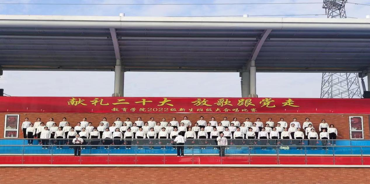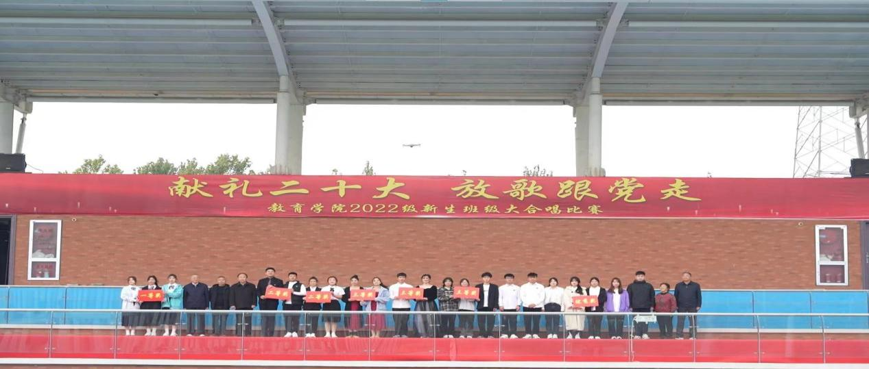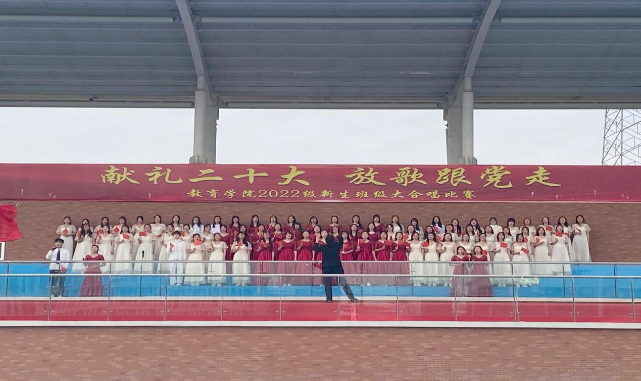 在全国上下认真学习贯彻党的二十大精神之际,永利集团304am登录为坚定青年大学生永远跟党走的理想和信念,引导学生赓续红色血脉,厚植爱国情怀,于11月6日上午在校户外操场举办了“献礼二十大,放歌跟党走”2022级新生班级大合唱比赛,莅临比赛现场的有学校副校长汪建利、教务处处长陈国平、后勤保卫处处长程坚、办公室副主任陈杰、永利集团304am登录院长王家云、副院长孟向红,校团委书记刘帅克、学生处老师、永利集团304am登录全体辅导员以及2022级49个班级的同学,学院2021级辅导员担任了本次大合唱比赛的评委。