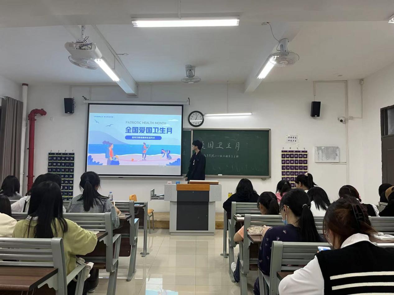 4月18日晚,学院2022级各班级以“第 35 个爱国卫生月活动”为主题,分别在1号教学楼固定教室召开了班会。班会以PPT形式向同学们详细介绍了全国爱国卫生月的由来和内容,讲解了爱国卫生运动悠久的特殊历史背景,讲述了全国爱国卫生月取得的重大成就,引导广大学生积极参加全国爱国卫生月活动,树立健康爱国精神。