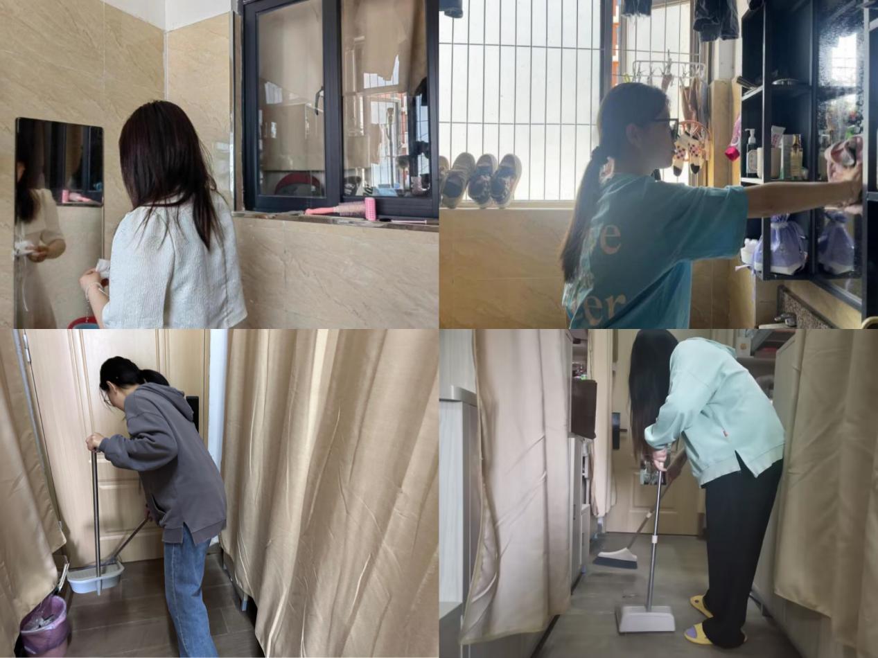 学生宿舍是同学们在学校的家,为引导大家养成良好的生活习惯,学院5月9日、10日,组织开展了“宿舍卫生大扫除活动”,大家从自身做起,主动地将自己的书桌、床铺、物品收拾整齐,将寝室公共的洗漱间、地面、窗台等收拾干净,营造了良好的寝室卫生环境。