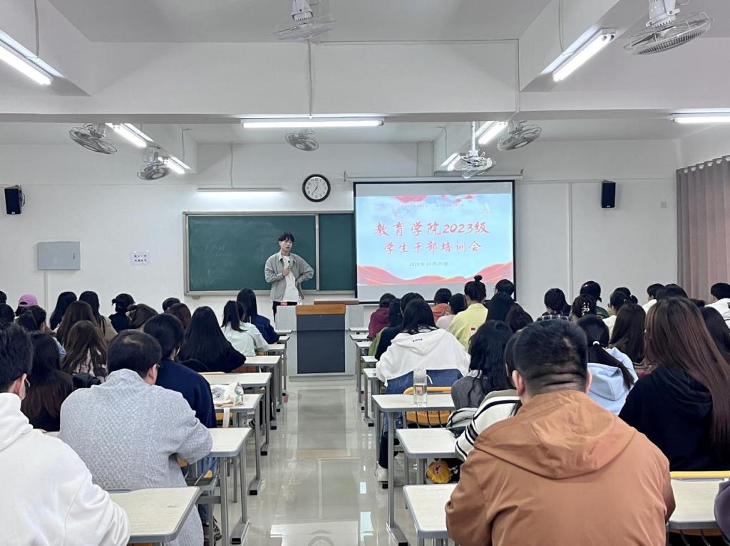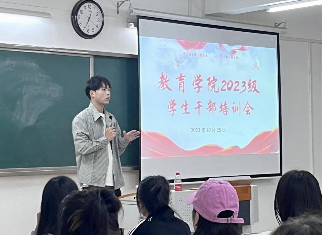 为进一步提高我院学生干部的综合素质和业务能力,强化学生干部服务意识、团队合作意识和凝聚力,扎实地推进我院学生管理工作。10月25日中午12点,在2号教学楼322室召开2023级班长、团支书培训会,会议由永利集团304am登录辅导员郭鸿鑫主持,2023级全体班长、团支书参加本次会议。