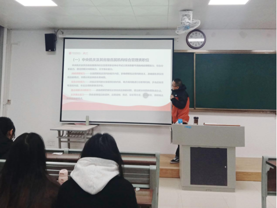 讲座期间,罗健老师还告诉同学们考公务员的重要性,并为同学们详细介绍了考公的科目内容与面试流程,为同学们积极备考打下了良好基础。