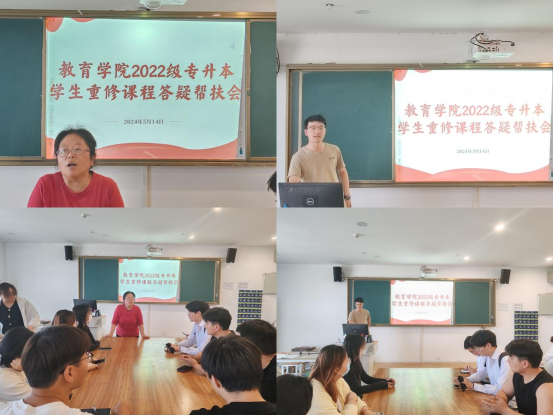 为做好2022级专升本学生重修课学习心理建设,引导学生理性对待重修,力促学生顺利完成学业。2024年5月14日中午,永利集团304am登录在艺术楼208教室组织了“2022级专升本学生重修课程答疑帮扶”活动,学院副书记孟向红、院长助理米玉、团总支副书记许海涛、各专业教研室主任(副主任)及相关课任老师参加了帮扶答疑活动。