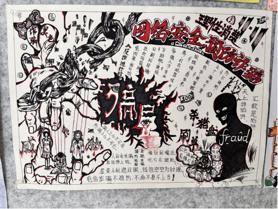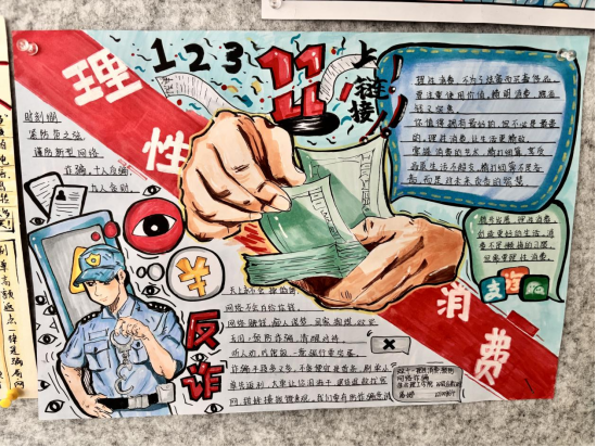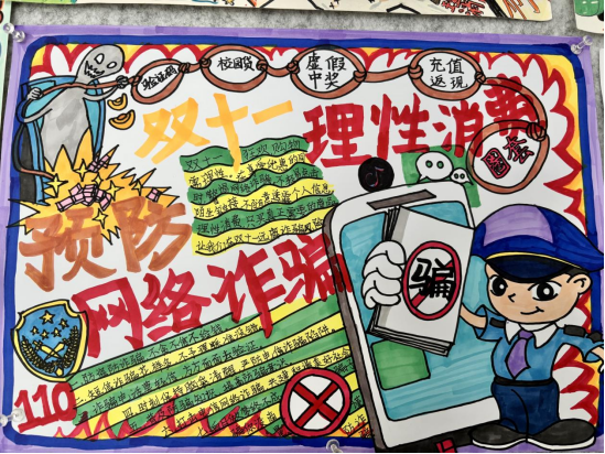 通过此次手抄报比赛活动,正确、理性的消费观念得到有效引导,同学们对网络购物更加理性。同时对网络购物中可能存在虚假促销、价格欺诈等进行了提醒,告知同学们要警惕网络诈骗的各种手段,如假冒客服退款、虚假购物网站、诈骗短信等,同学们增强了自我保护和防骗反诈的意识。